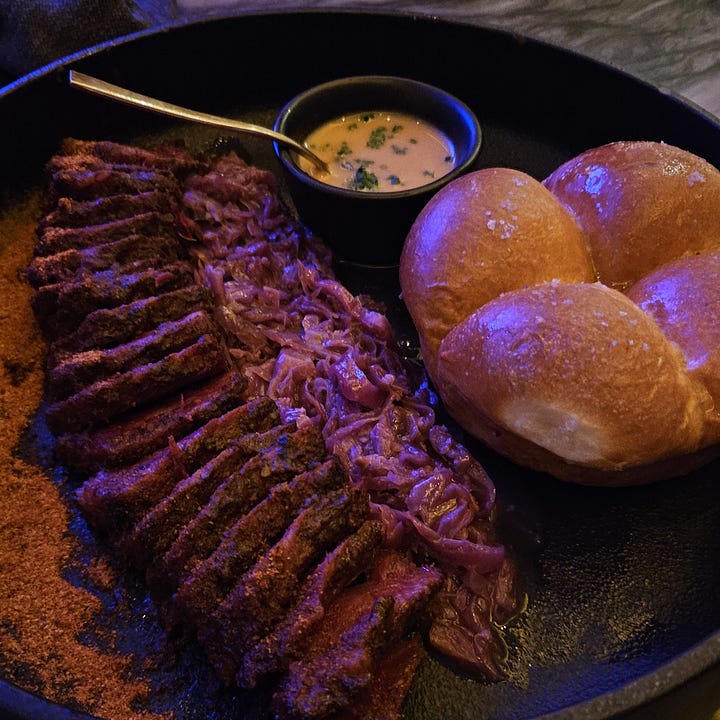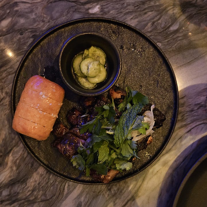 Onwuachi cozinha com o coração e coloca no cardápio do restaurante dele - que fica num dos lugares mais lindos de Nova York, o Lincoln Center - temperos das ruas, sabores que nos parecem familiares, mas têm muitas pitadas inovação e festa. passei meses tentando uma reserva até, finalmente, conseguir uma mesa em outubro, quando recebi um casal de amigos aqui em casa. fomos num grupo de cinco pessoas e saímos felizes, satisfeitos e com a sensação de que tinha sido uma das melhores refeições das nossas vidas.